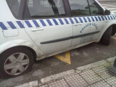 Esta madrugada han sido saboteados los dos coches patrulla que la policía local canguesa tenía aparcados en su lugar habitual. Los pincharon siete de las ocho ruedas.