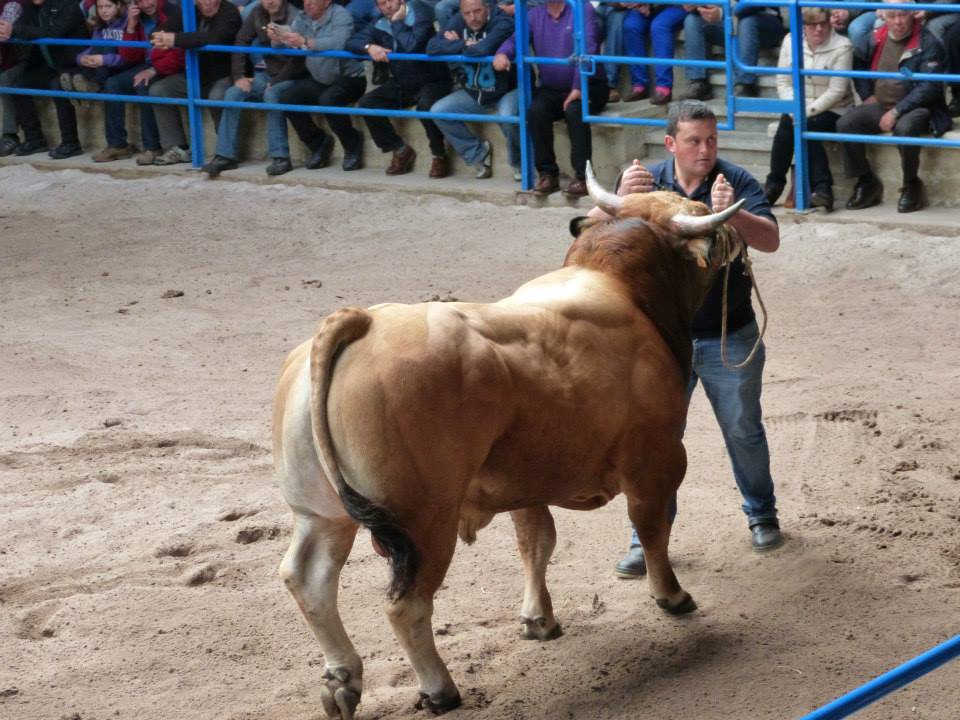 4Pero la puja estuvo más que animada en su totalidad. Entre murmullos, aplausos y exclamaciones, fueron saliendo los toros que partían de un precio inicial de de 1.400 euros. Todos fueron vendidos. Les señalo otros precios de sementales como referencia: 3.700 y 3.800 euros. La presencia de  todos ellos fue muy celebrada entre el público y los sesenta pujadores oficialmente acreditados y procedentes de León, Galicia e incluso Huelva.