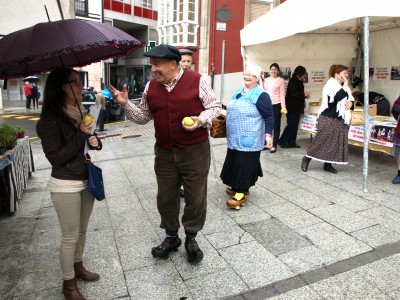 Integrantes del grupo de teatro de personas mayores repartieron en poco más de dos horas 60 kilos de manzanas a fumadores que cambiaban el cigarrillo por la pieza de fruta y a otras que simplemente querían sumarse a la celebración de una vida sin el humo del tabaco.