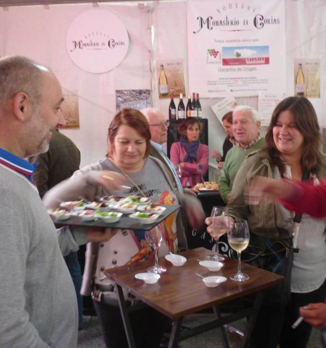 La carpa de la Denominación de Origen Protegida (DOP) cerró  su ciclo de actividades con una demostración de cocina a cargo del cocinero Lluis Nel Estrada. “Vino de Cangas a mordiscos” mostró al publico las posibilidades del vino en la cocina: Estrada elaboró tres platos que los asistentes pudieron degustar. El primero consistió en una ensalada con queso afuega’l pitu y vinagreta de almíbar de vino, elaborado con un tinto Siete Vidas. Después, chorizos al vino del Monasterio de Corias, y un postre de peras al vino, hecho con el crianza de Monasterio de Corias.