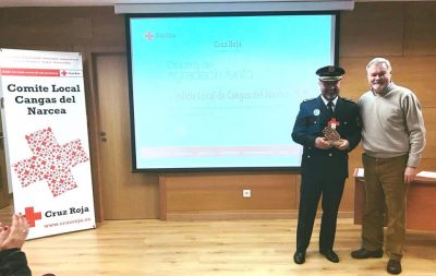 Ha sido un acto sencillo al que han asistido el voluntario local así como una representación de todos los partidos políticos que hay en nuestro Ayuntamiento y los mandos de la Policía Local de Cangas del Narcea . Antonio Menéndez Queipo y de la Guardia Civil , Raúl Ferrer Rodríguez, a quienes se les hizo entrega de un Diploma de Agradecimiento así como una figura, realizada por un artesano local, que representa al escudo de concejo con la Cruz Roja.