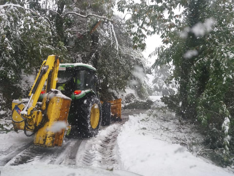Desde el Ayuntamiento seguimos retirando árboles y nieve entre nuestro personal, Protección Civil y empresas contratadas de refuerzo (4 en este momento)”.