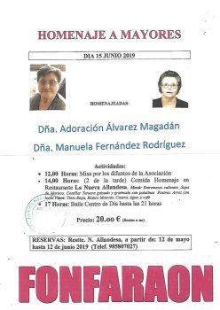La Asociación de Mayores y Pensionistas Fonfaraón rinde cada año homenaje a dos personas mayores del concejo, en un acto al que se invita a participar a socios, familiares y a amigos.