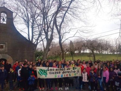 El recorrido, de algo más de dos kilómetros, partió de la plaza del Ayuntamiento y subió hasta el campo de San Roque, para regresar de nuevo al punto de partida. Varios menores se pusieron al frente de la marcha y portaron una pancarta con el mensaje, ‘Los niños de Tineo tienen derecho a pediatra’.