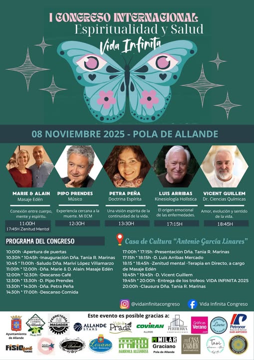 Así pues Pola de Allande vivirá esté sábado una intensa jornada de ponencias con las que se acercará al público al mundo intangible. Se trata del primer congreso internacional de espiritualidad y salud “Vida Infinita”.
