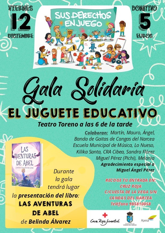 Mañana, viernes, 12 de diciembre, tendrá lugar en el Teatro Toreno de Cangas del Narcea, la presentación de una Gala Solidaria “El juguete educativo” que organiza Cruz Roja y cuyas entradas se pueden recoger en la sede de la entidad con un donativo de cinco euros.