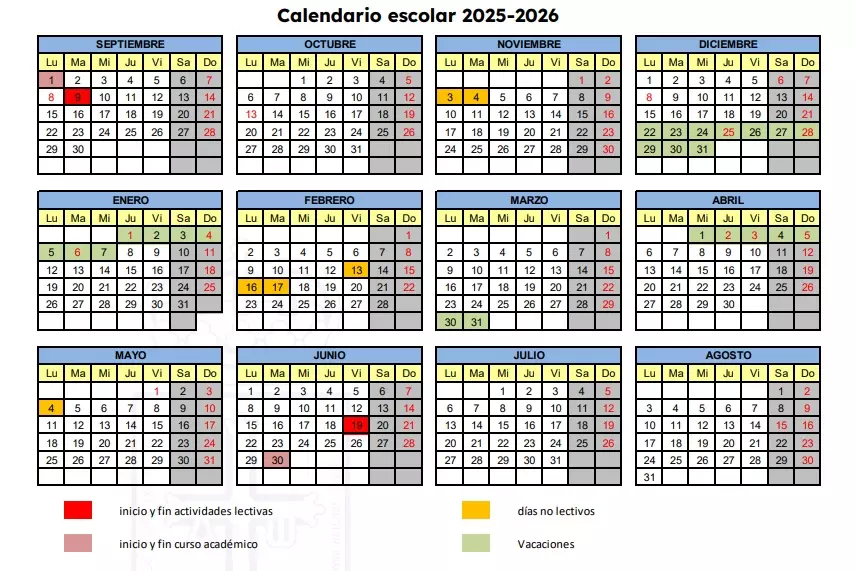 Las clases concluirán un día antes que en la programación del curso pasado: la actividad lectiva finalizará el viernes 19 de junio. Por su parte, el curso académico comenzó el lunes 1 de septiembre y terminará el martes 30 de junio.