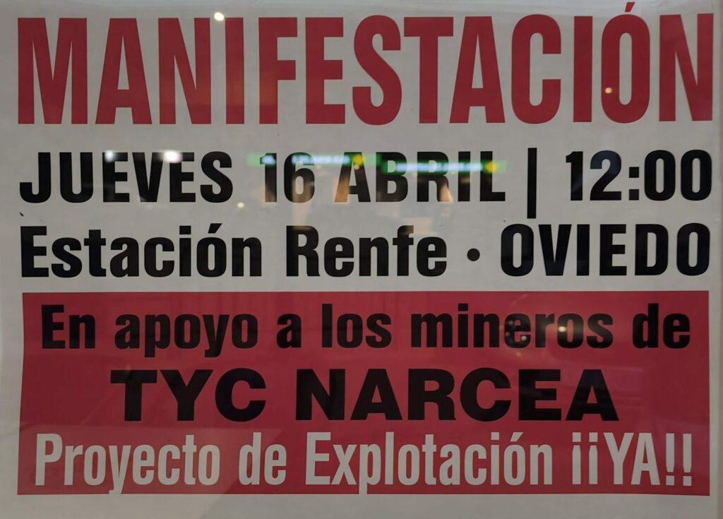 Los trabajadores de TYC Narcea, que explota la mina de carbón de Vega de Rengos, en Cangas del Narcea, vuelven a llevar sus reivindicaciones a la calle, esta vez con una manifestación por el centro de Oviedo, convocada para mañana jueves 16 de abril. El recorrido de la protesta comenzará a las 12.00 horas en la estación de tren y pasará por las calles Uría, Toreno y Santa Susana para acabar en plaza España, donde tienen previsto mantener una reunión con el director de Energía y Minería, Javier Cueli.